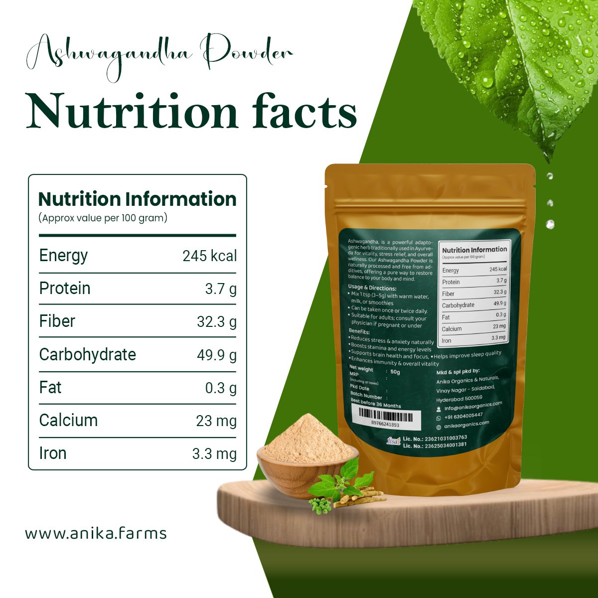 - 100% Natural & Pure Ashwagandha Root Powder