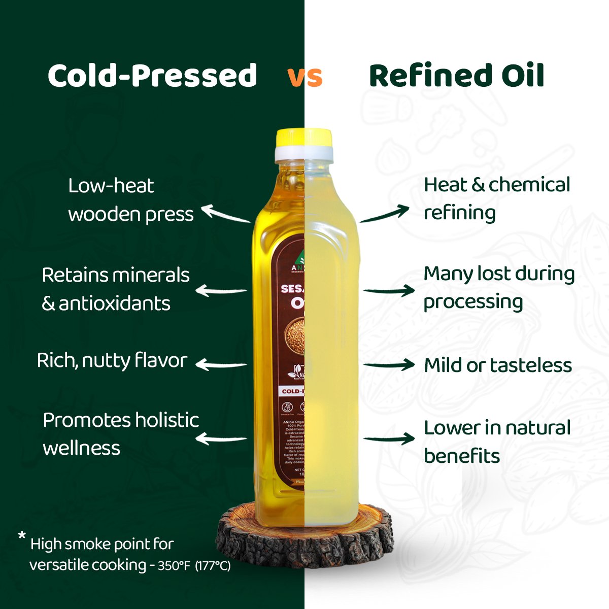 Feature | Cold-Pressed White Sesame Oil | Refined Oil |