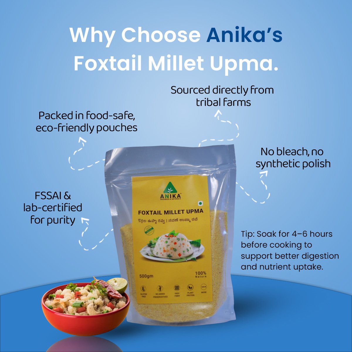 Made by stone-milling whole, unpolished foxtail millet into a coarse semolina-like texture. No polishing. No chemicals. Just pure nutrition.