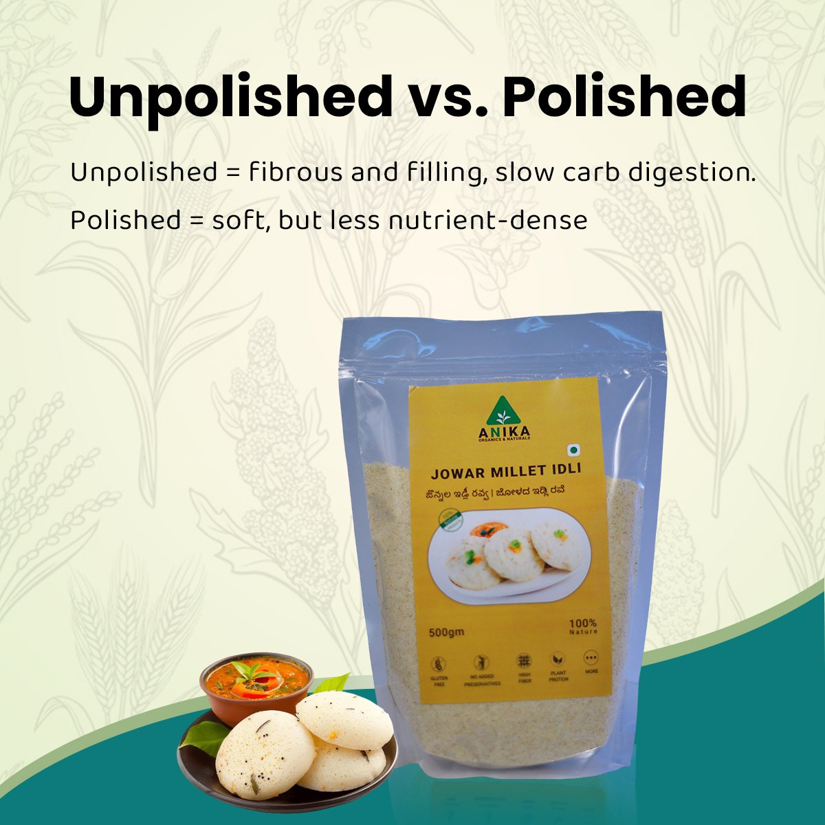 Unpolished jowar rava made by coarsely grinding whole yellow sorghum. Excellent grain for both sweet and savory recipes.