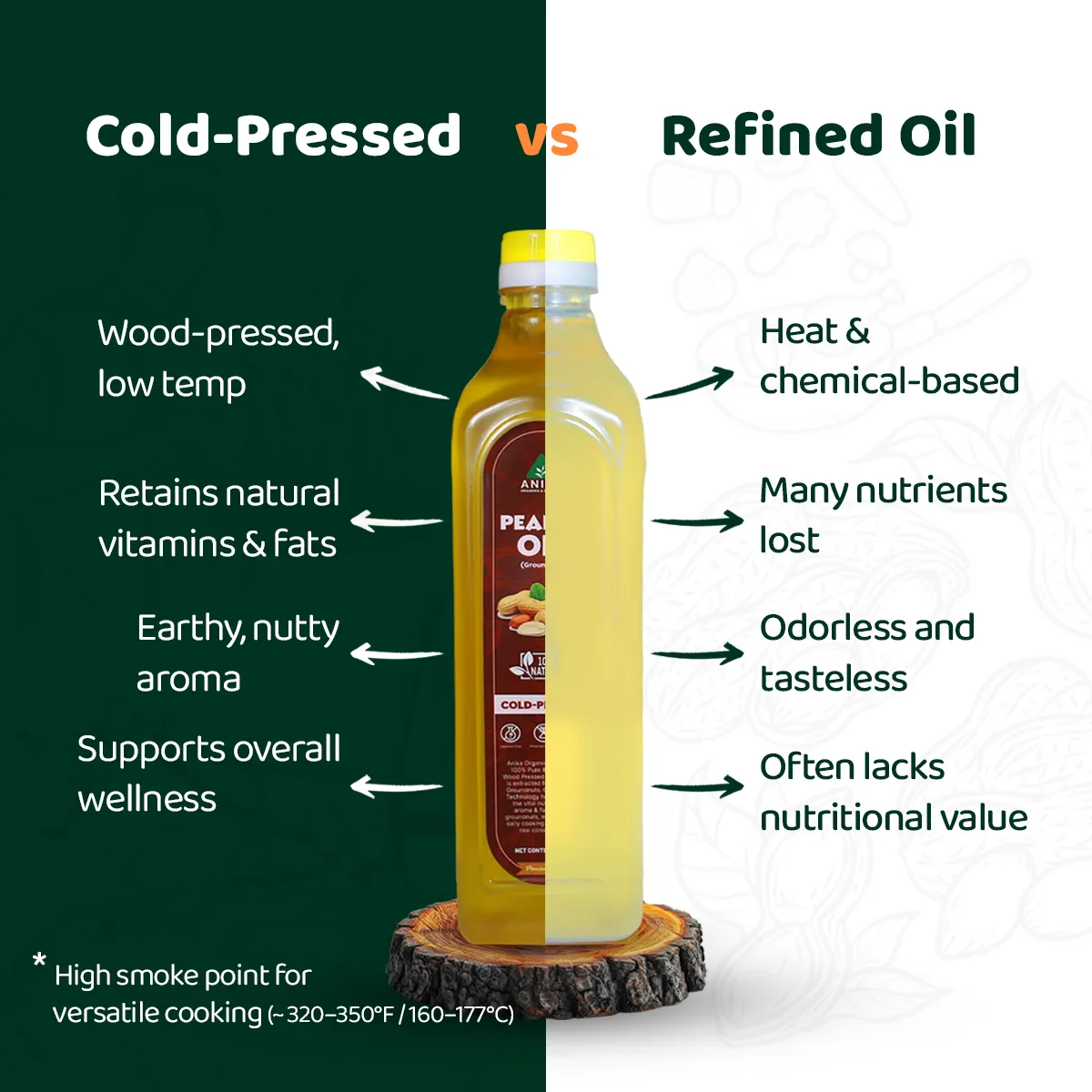 | Feature | Cold-Pressed Peanut Oil | Refined Oil | |