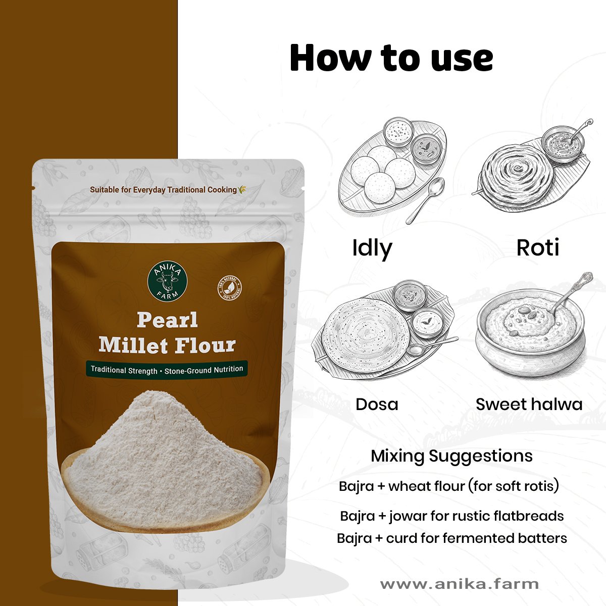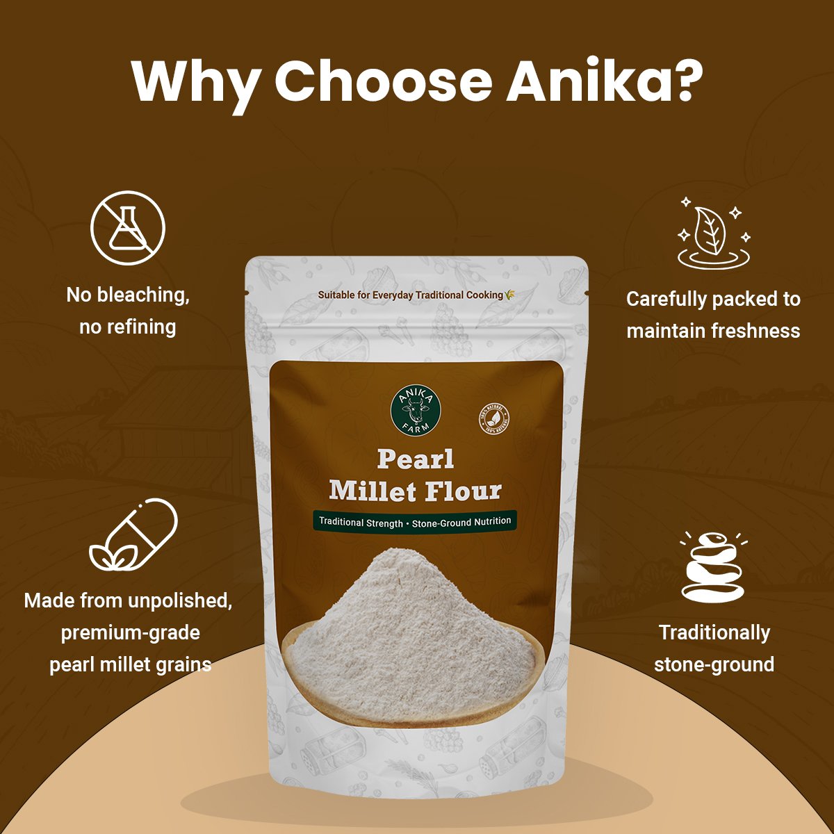 Pearl Flour is made from unpolished Pearl grains, traditionally consumed across India for its hearty and nourishing qualities.